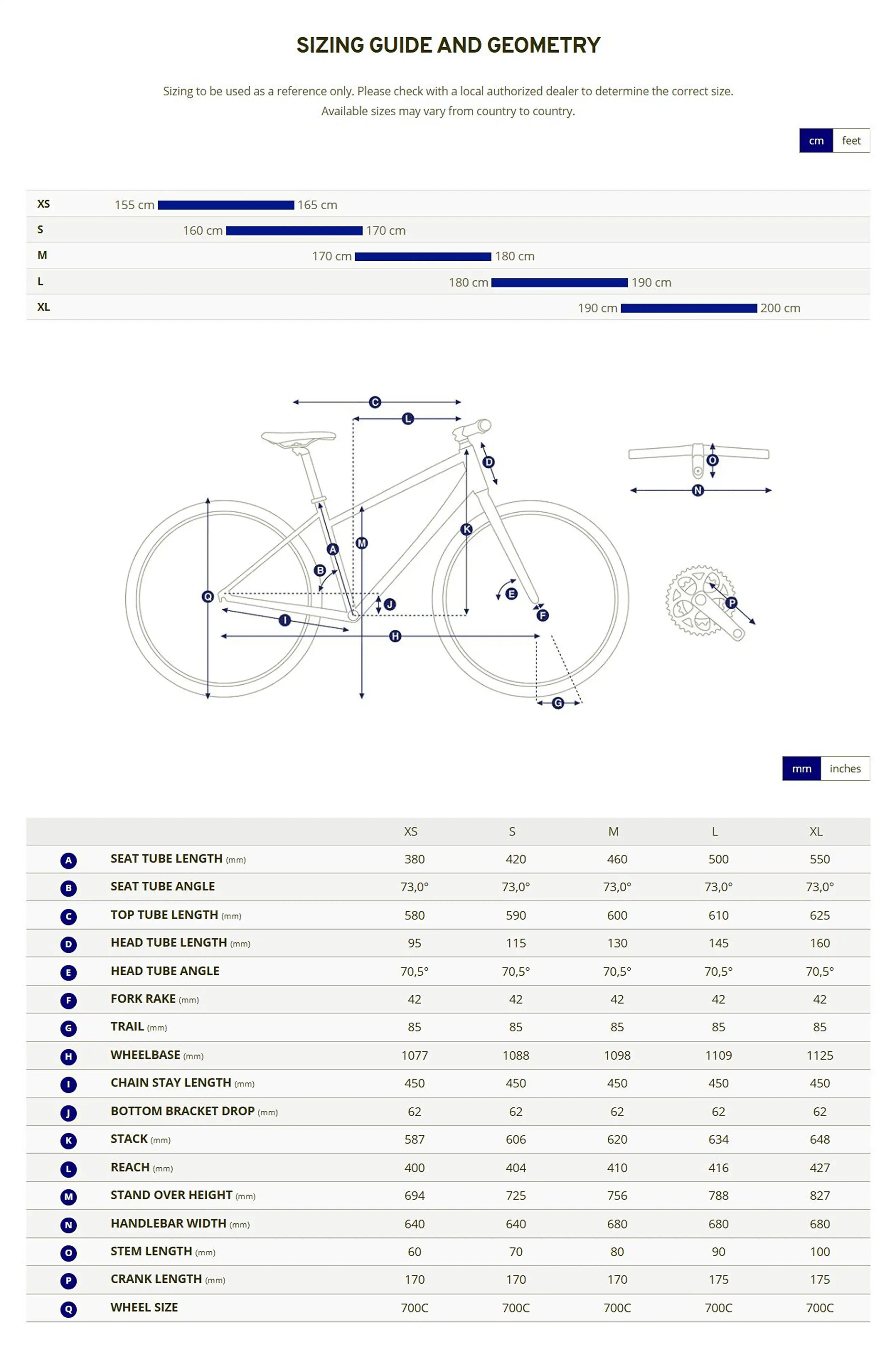 Crankset: Forged alloy, 30T/46T, S:170mm, M:170mm, L:175mm, XL:175mm