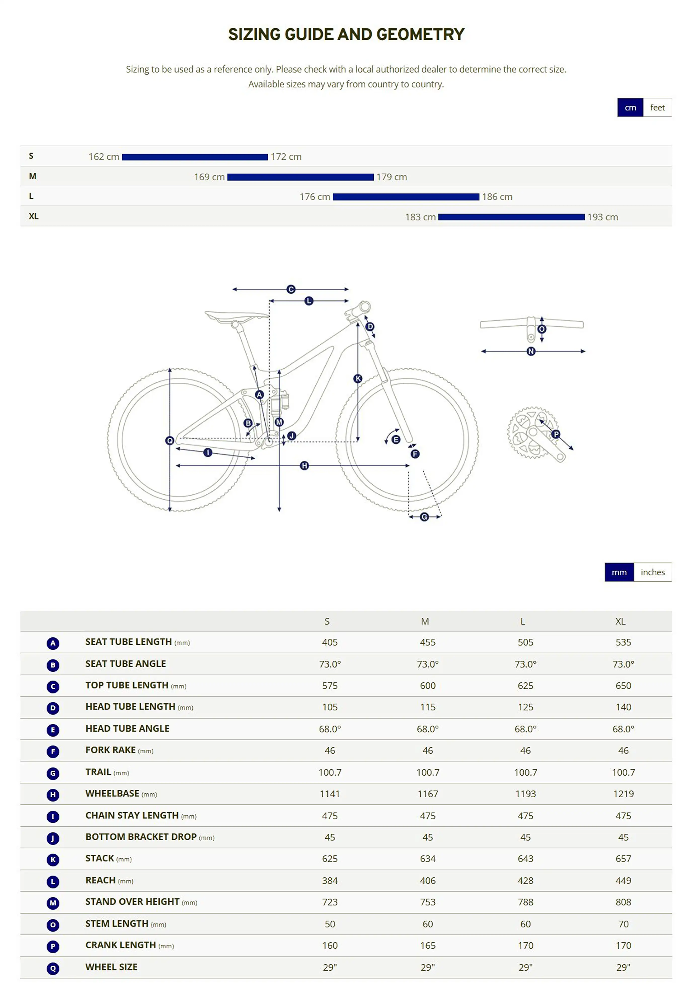Crankset: Forged alloy, 36T S:165mm, M:165mm, L:170mm, XL:170mm