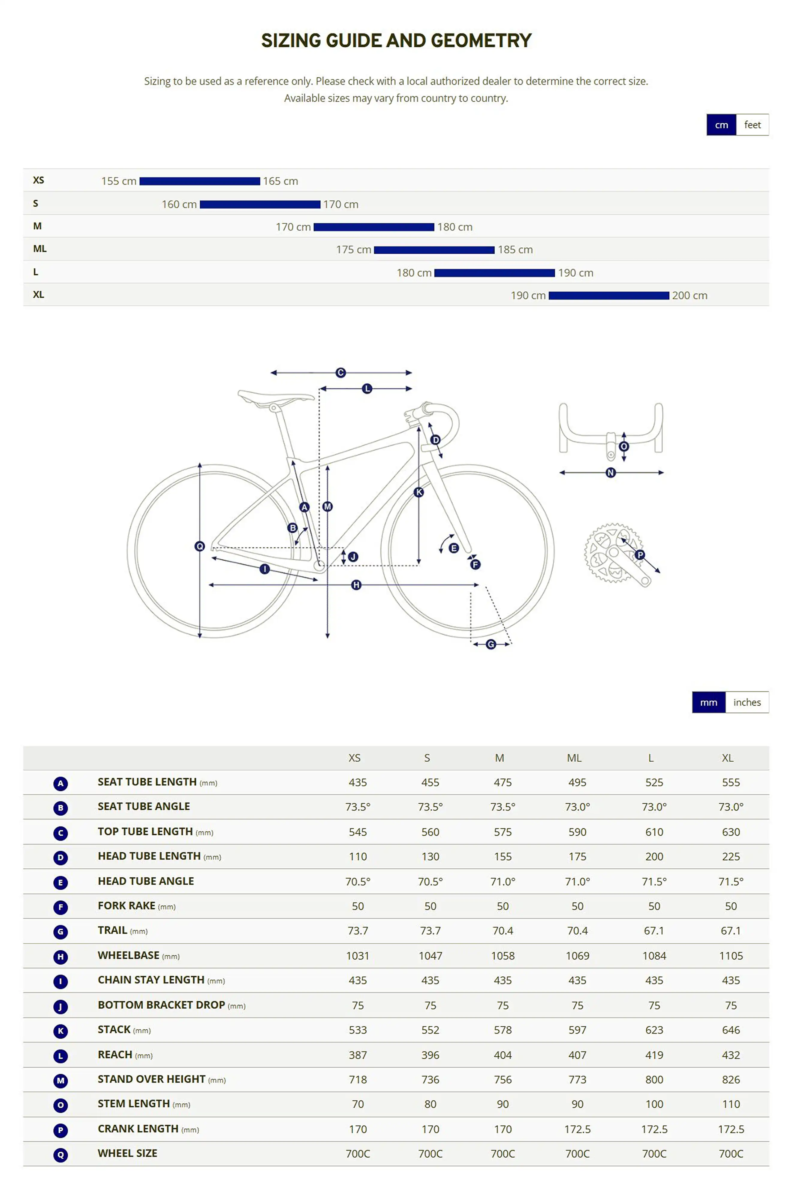 Crankset: FSA Omega AGX+, 42, XS:170mm, S:170mm, M:170mm, M/L:172.5mm, L:172.5mm, XL: 175mm