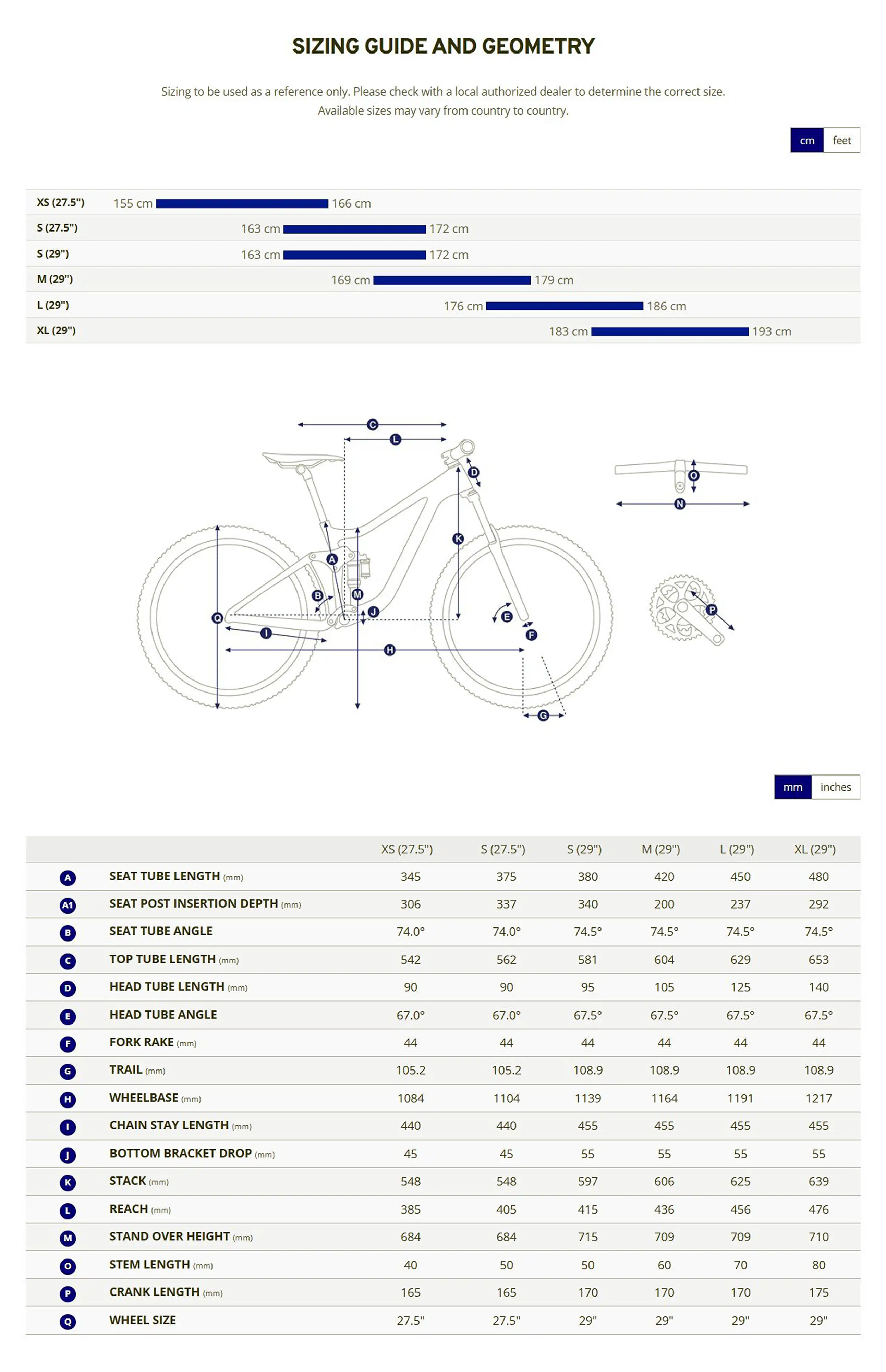 - OFF-ROAD CONTROL: New geometry is optimised for confident trail riding and two different wheel sizes (27.5 or 29-inch) depending on frame size and model. The geometry is also designed for front suspension with either an 80mm or 100mm fork depending on frame size and model. All models have clearance for high-volume tyres (up to 2.4-inch) for traction and grip on technical terrain.
