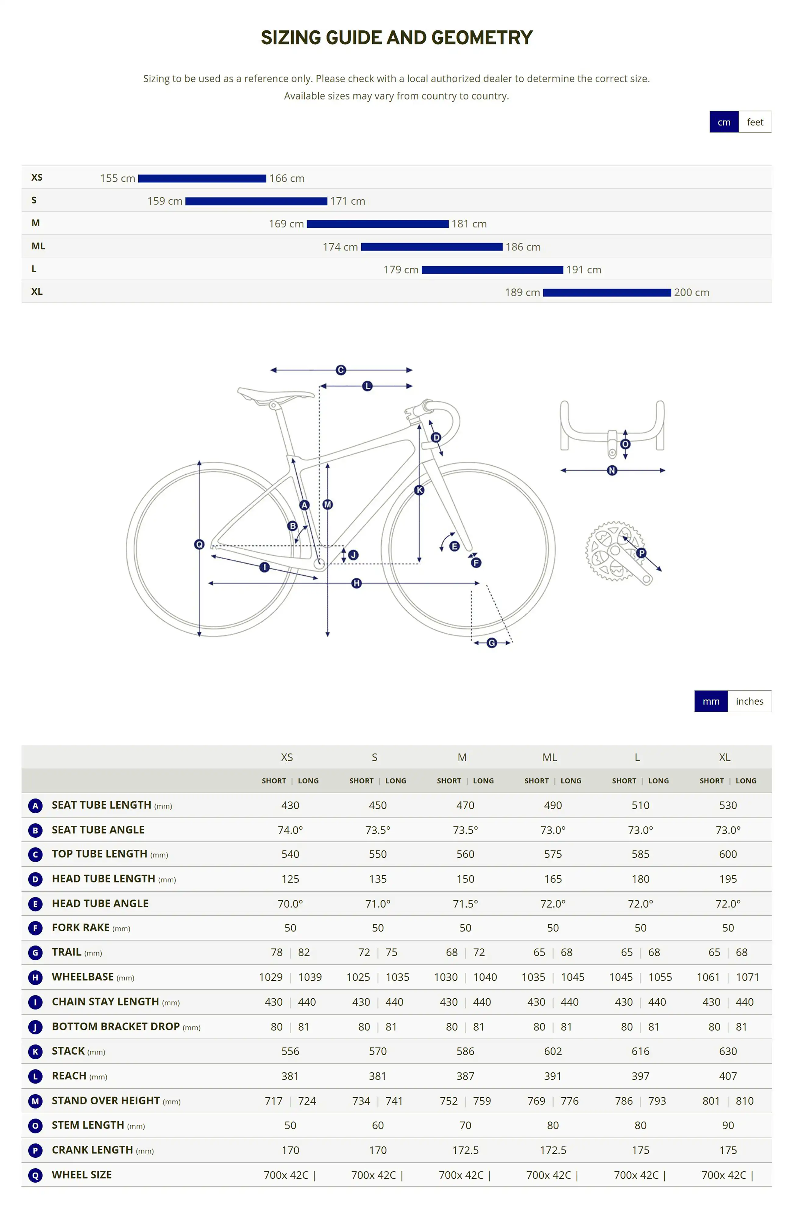 Crankset: Shimano Cues U6030-2, 32-46 XS:170mm, S:170mm, M:172.5mm, M/L:172.5mm, L:175mm, XL:175mm