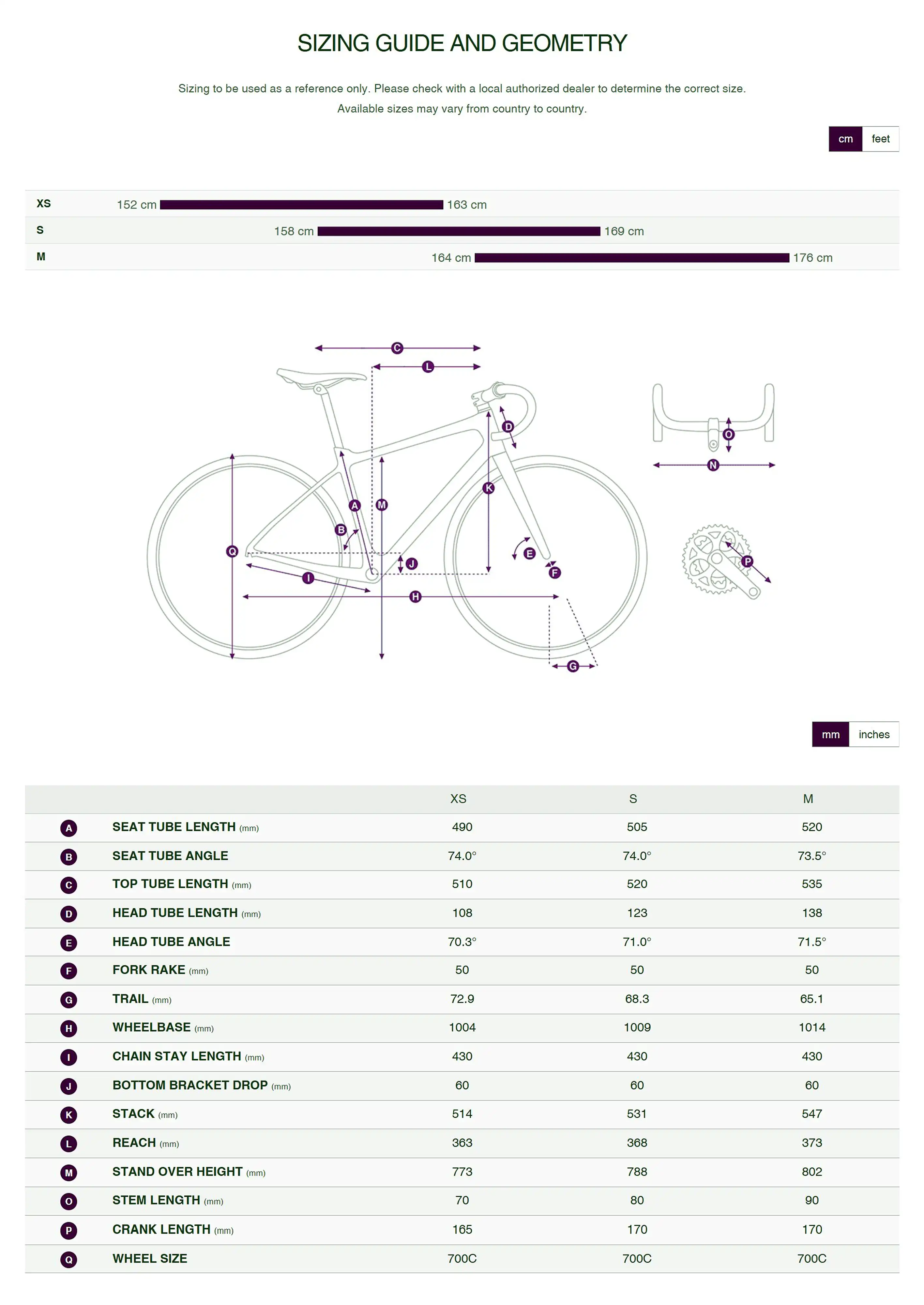 Crankset: Shimano GRX RX-810, 40t XS:170mm, S:170mm, M:170mm