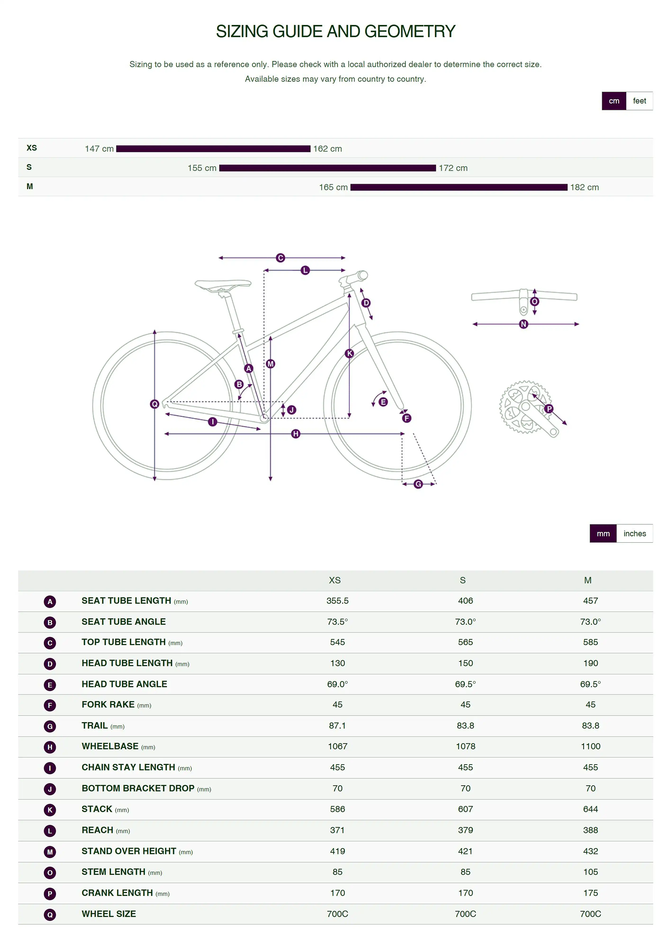 Crankset: forged alloy, 28/38/48T , XS:170mm / S:170mm / M:175mm