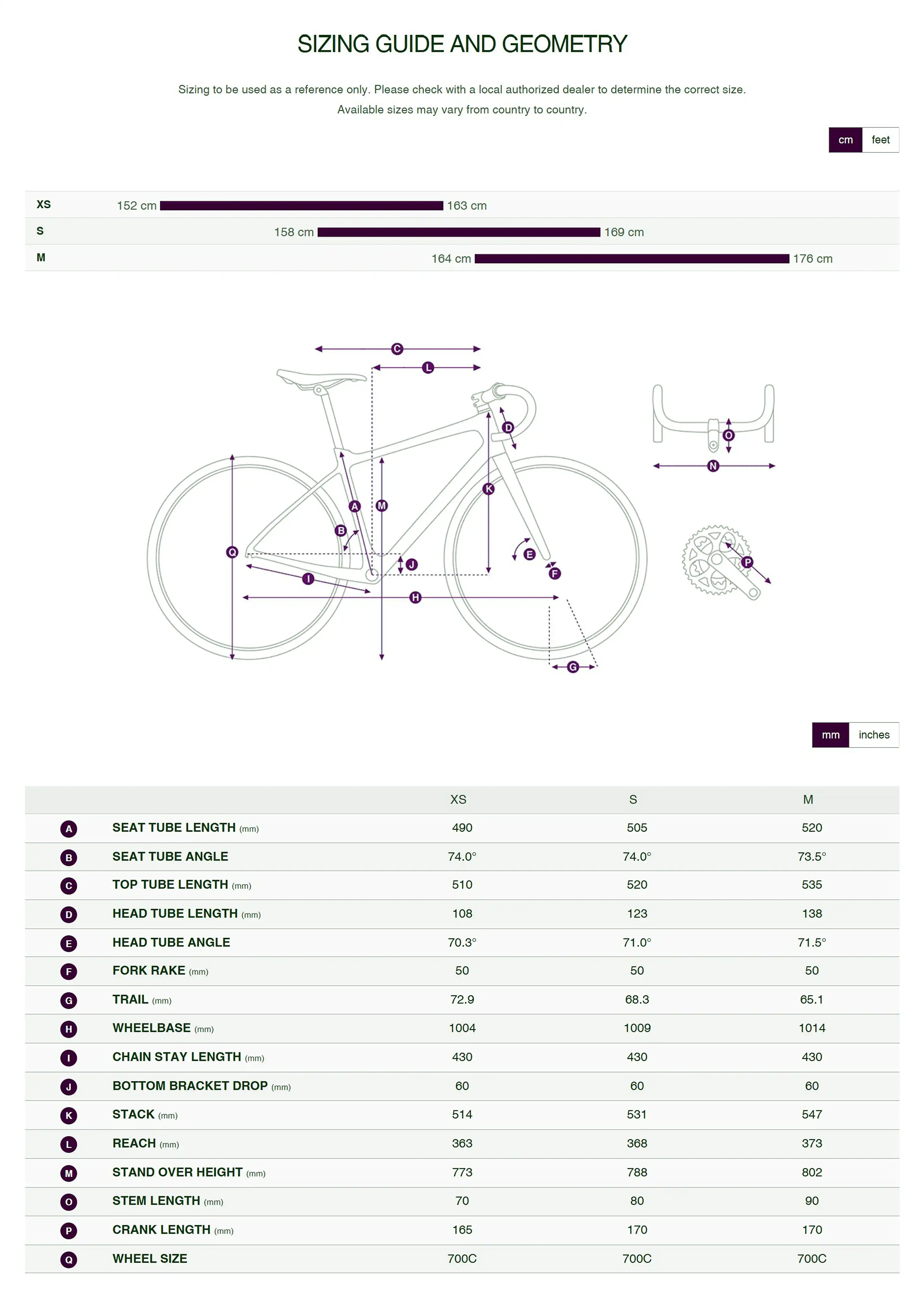 Crankset: Shimano GRX RX-600, 40t XS:165mm, S:170mm, M:170mm