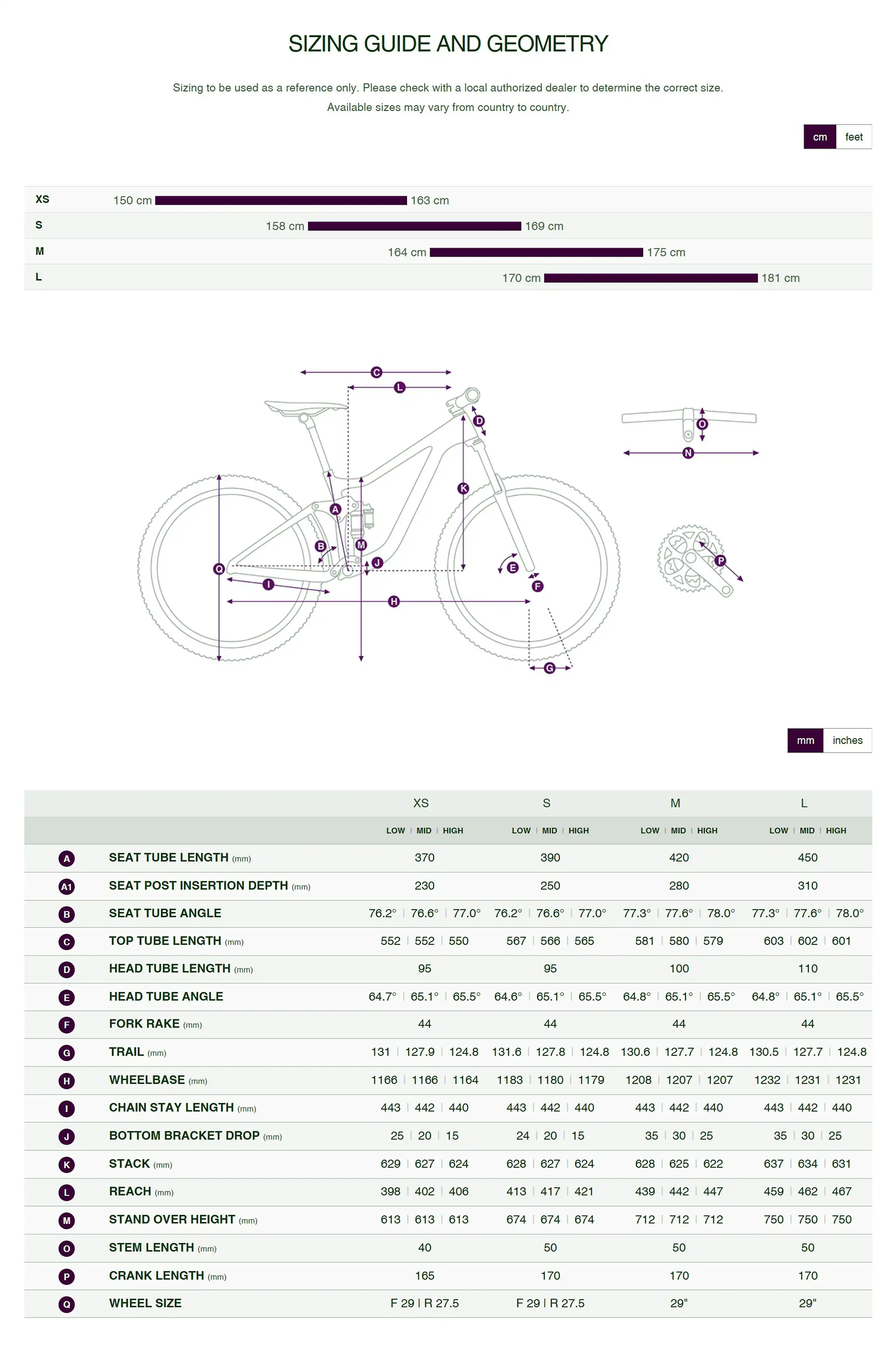 Sizes: XS: (F 29"/R27.5"), S: (F 29"/R27.5"): M or L: (F/R 29") , MX compatible