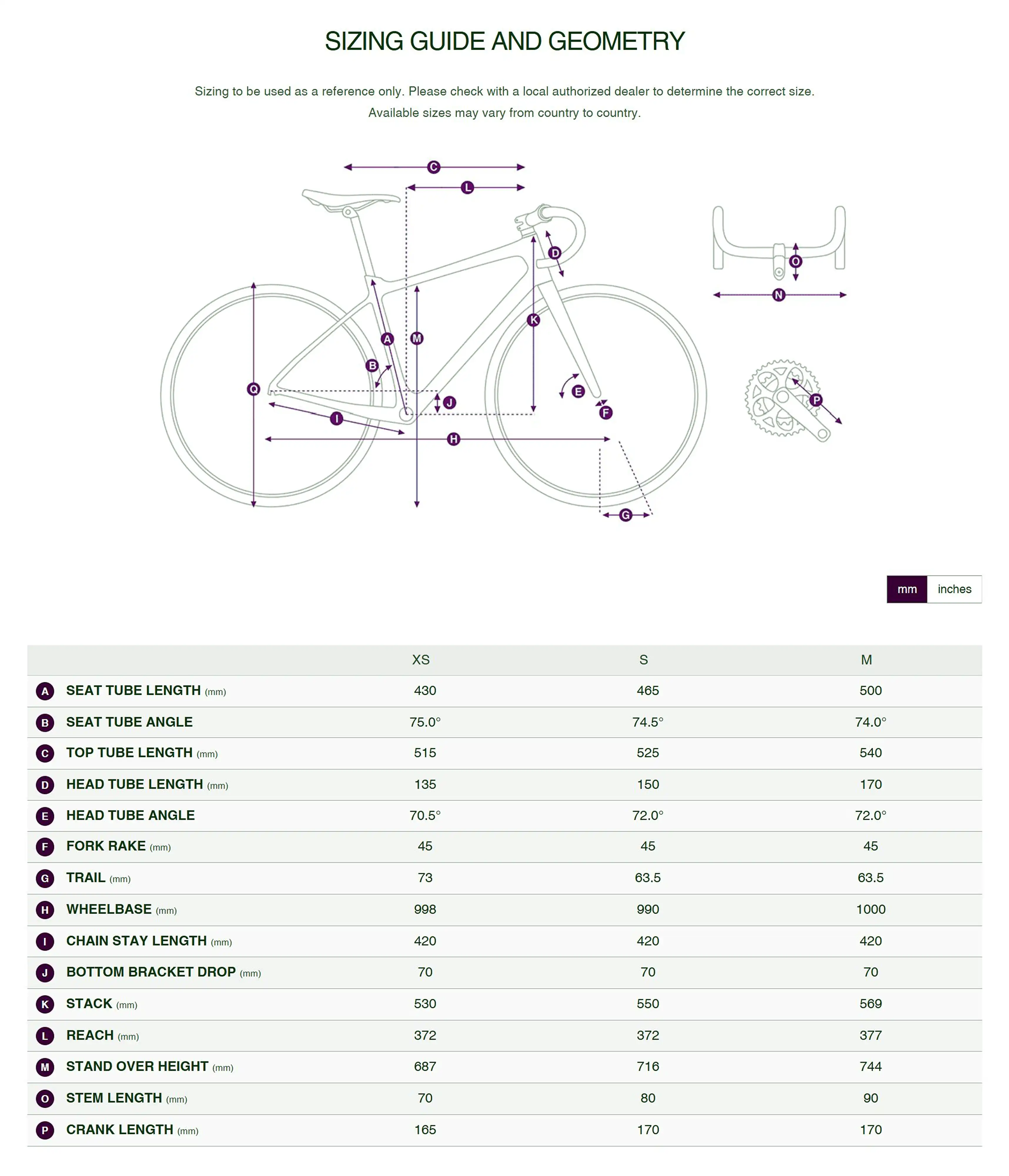 Crankset: Shimano Cues FCU6030-2, 34T/50T XS:165mm, S:170mm, M:170mm