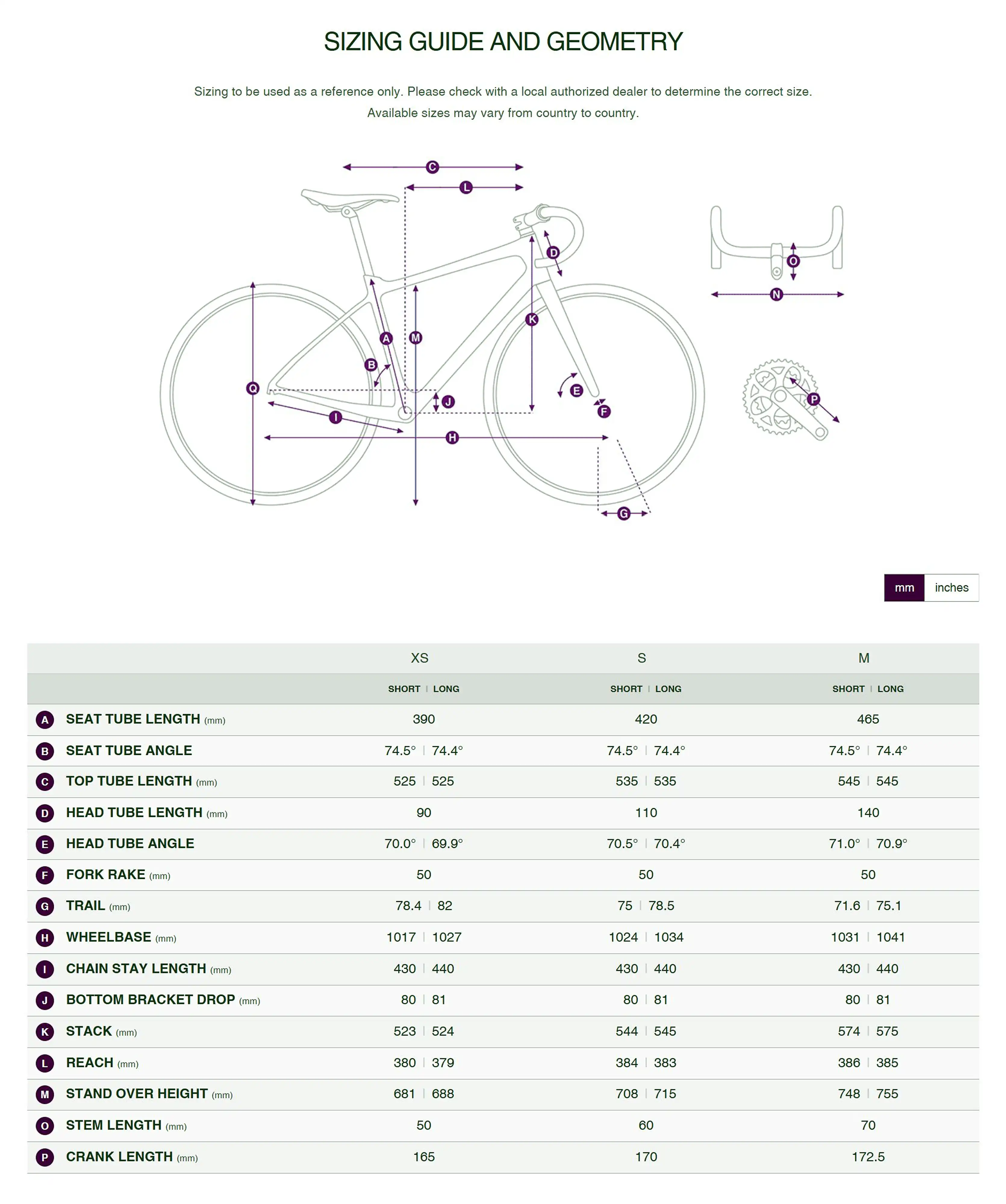 Crankset: Shimano Cues U6030, 32T/46T XS:165mm, S:170mm, M:172.5mm
